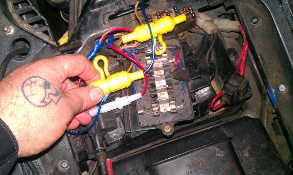 Thanks for the input. I put an inline fuse for the ignition, headlight and turn signals. The metal prongs started breaking, so thats what started this whole process. Also, when you hit the starter button, the lights go out. I'll try to post up some pics later. -