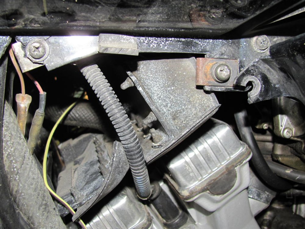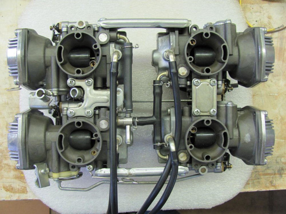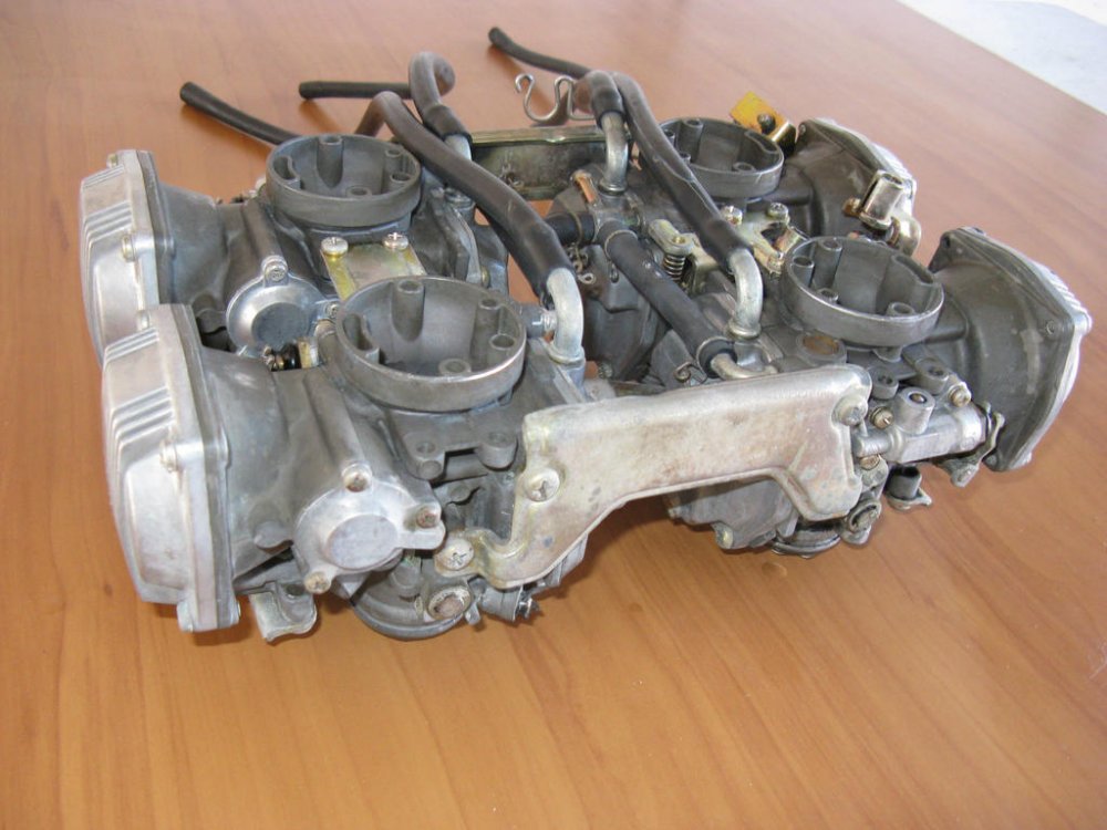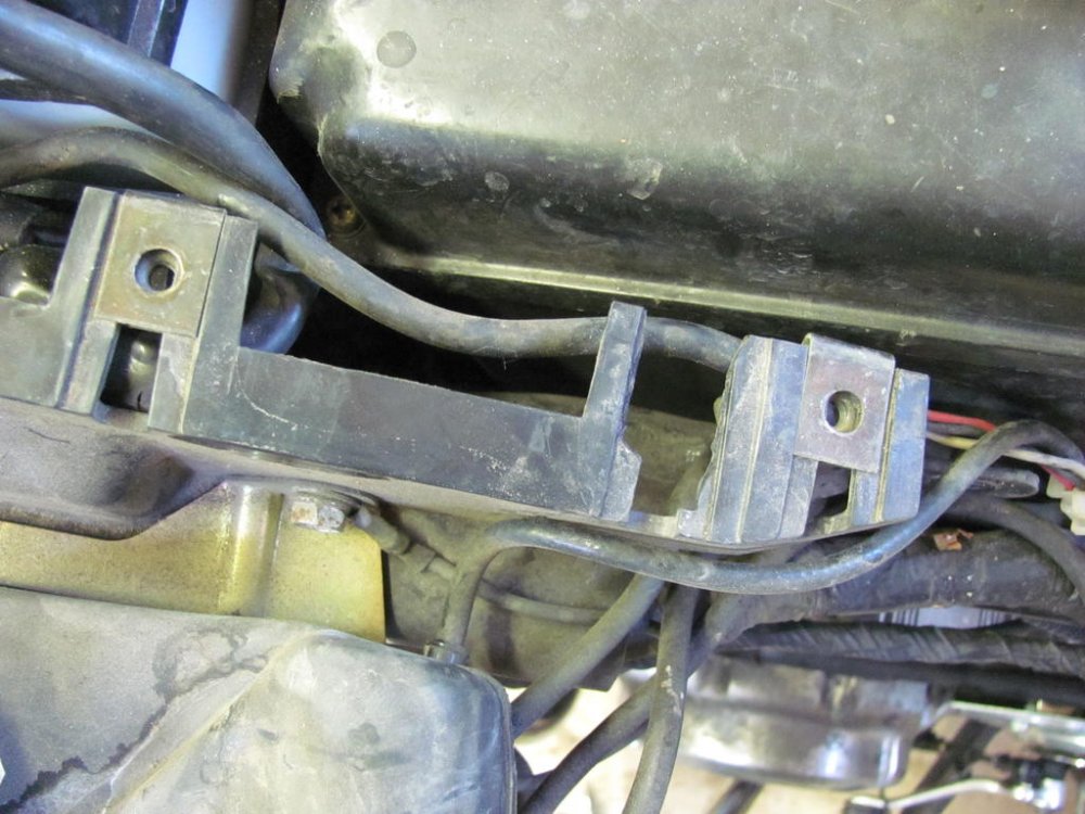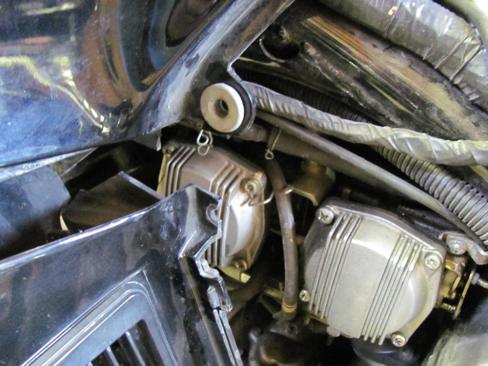 Yamagrl is correct. Here's a clearer picture of 1983 cabs showing that bracket. And a picture of 1991 carbs shot from a lower angle, showing that bracket in a semi-profile. It is not a simple plate as the right side is. Here is another shot of that bracket. It serves a throttle cable holder as well as joining the carbs. This is from a VMX12. Same as XVZ13/12. -