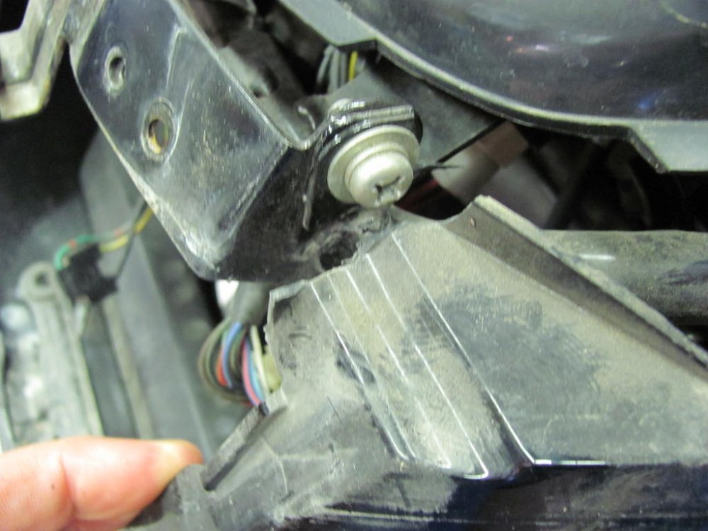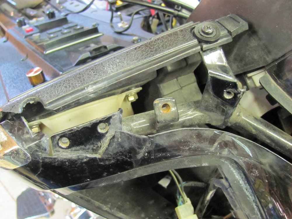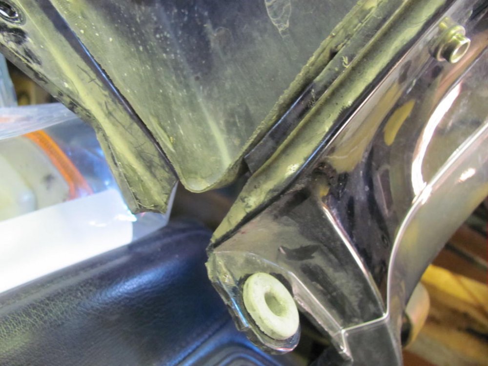 I took a bunch of photos of the fairing on the 1991 because of all the places it was broken. I'm not sure if any will help you, but they are attached. As for the fairing mount at the mirrors, both mine were broken with missing chunks. I repaired both sides by adding 1/8" ABS pieces to fit and using ABS cement and fiberglass screening scraps, was able to repair to my satisfaction. There were no spacers. Follows is a photo "dump" of all my fairing pics. Relevance is questionable for you, as most of these pics show "before", as in broken. I don't know what was holding the plastic on the bike! Follows are some pics I took from the internet of various fairing attachment points that were not broken, just so I could approximate the proper shape and hole location for rebuilding mine. I also made cardboard templates to facilitate fabricating missing plastic. Hope some of this helps. But very possibly it does not.