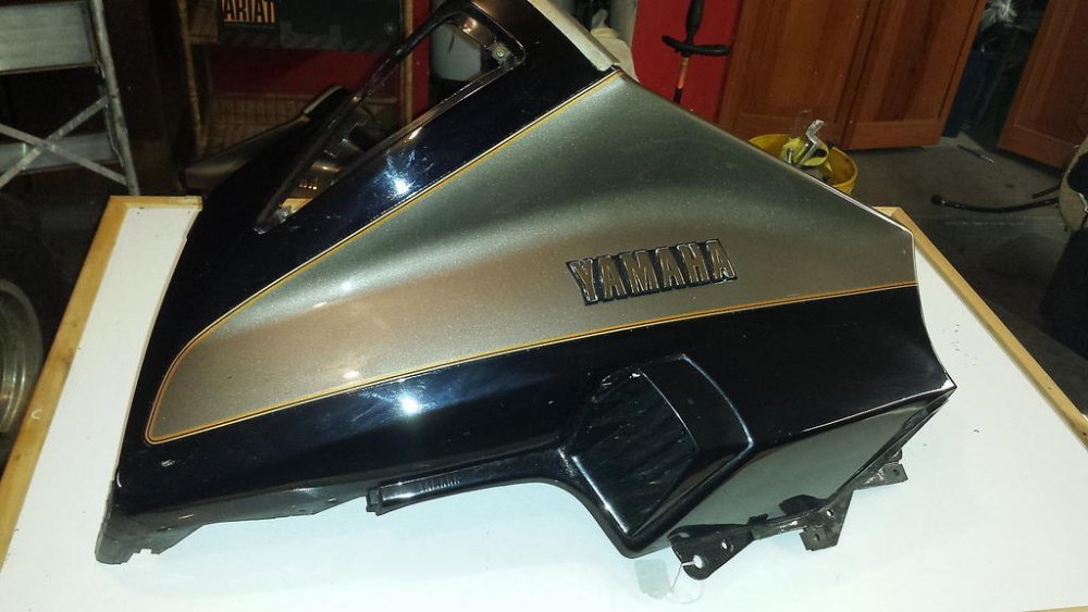 @KIC has an '89. @frankd has an '89. @Golf&Venture has an '89. When I put Condor's brace on my 1990 (with the factory gaiters [yes, @cowpuc, that is how it is spelled]) I found that his brace did not fit between the forks. I trimmed the gaiters and loosened all the pinch bolts AND the axle bolt and was able to install the Condor brace. Jack mentioned that you might have to do those things to fit it, even to a pre-gaiter (gaiters were introduced in 1990) model. I've seen where at least one person used a drum sander to remove some material that allowed for a good fit. Yamaha changed the lower/outer fork legs in 1988 and again in 1990 (to accommodate the gaiters). An external groove near the top of the lower legs is an indication of 1990 or later, as well as the yellowish silver paint (Yamaha called it "light gray metallic" or "light yellowish gray metallic") applied to the 1990 lower forks.