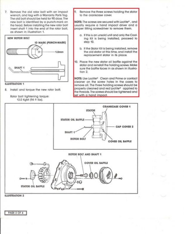 There should have been spring lock washers under the screw head. Were there? There should also have been an oil baffle plate. Was there? Adding a flat washer to space the screw head out should work, provided the additional screw head projection does not interfere with anything. I have a good page 3-52, but it does not address the stator or the torque values for the stator mounting screws. There is no specific torque value for the stator mounting screws. In a Technical Service Bulletin, Yamaha says to use Loctite and tighten the screws with hand impact driver.