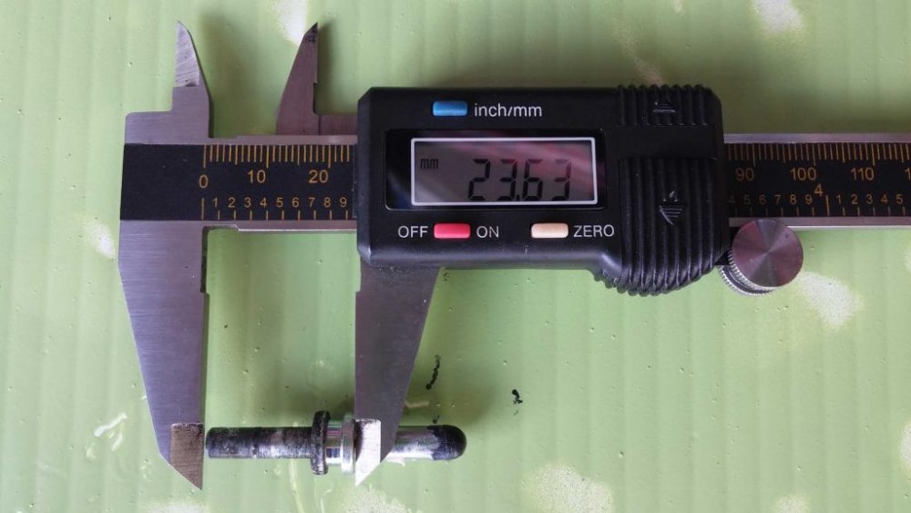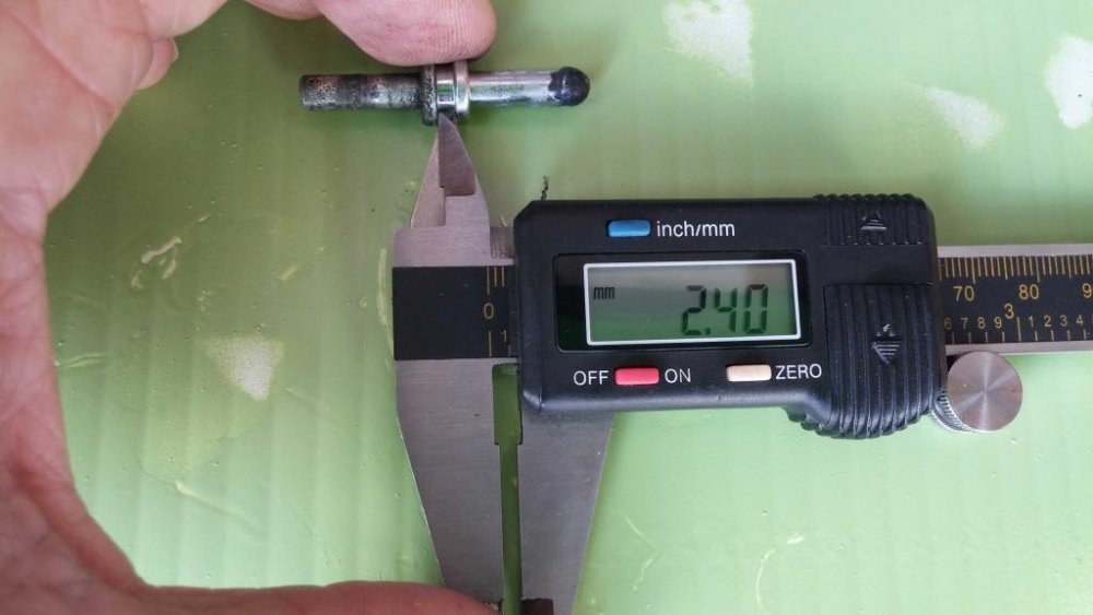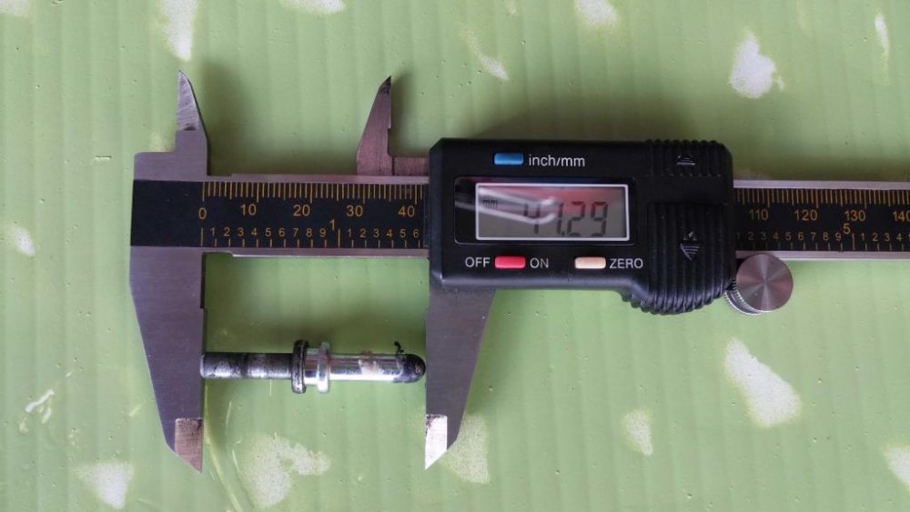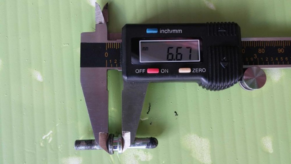 See if these pics will help you out. The reading are in MM To make it easy the thickness of the collar in middle is 2.10 With a little math you would have got there. LOL Hope this gets you going. You still got the brass piece that goes in the lever end the rod pushes on? 12:47- Jusst put mine back together. I didnt measure both sides of the rod for pics. But discovered the flat end that goes in the clutch handle is slightly smaller. It measures 4.87 diameter.