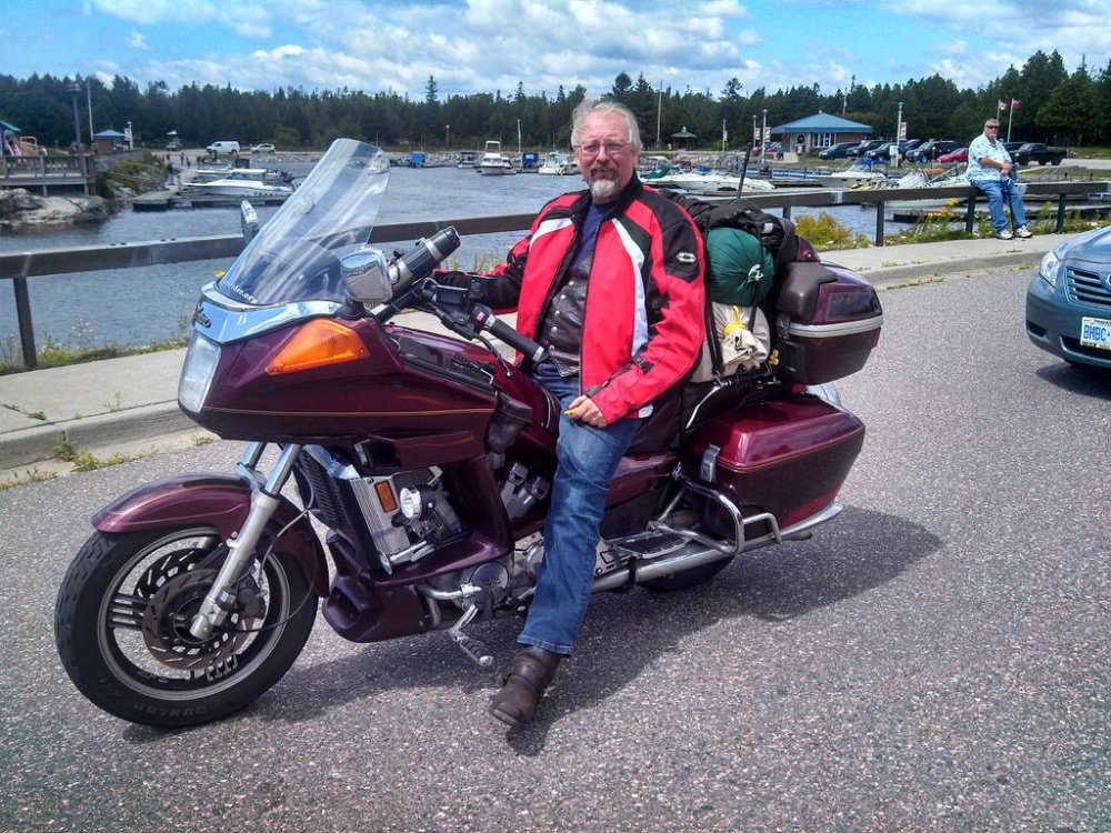 Well I too got home safe and sound eventually. No thanks to Carl who just kept leading me on by dangling ice cream under my nose. When we finally got close enough to his home where he felt he could go the rest of the way without a Nanny Bum, to hold his hand, he chucked me aside like a used rag after an oil spill. I did get the ice cream as a reward for baby sitting him however. Once we parted I took quit the scenic route home going through Dundas who,s main street was shut down for carnival ripe with lots of ice cream. (Did you you get that Marcarl lots and lots of ice cream) I did eventually make it home were Dino I mean Rio was so excited he practically Knocked me off my feet. Once that was out of the way I got a big loving hug from wife and a little consolation hug from her for Carl, Cause she knew if he was there he would expect a hug also. For me even though I thoroughly enjoyed myself as always., There was an element of bitter sweetness in that (A) Bob was not physically present and (B) knowing that this was the last VR rally at this location. I will really miss this and hope the future Rally arrangement will be as successful. Last and most importantly I would like to give thanks to Tom, Tom and Amy, Robin and Bob, Spanky, and Mr. Ken, for all their hard work and commitment to make this Rally another success story. I would also like to thank Michelle and Terry from Pioneer motor sports for all they have done for us not just this time around but over the years as well. An additional thanks to Michelle for the accommodation's she made available to us. Ride safe one and all and if we don't see each other again somewhere this year I hope to see you next year.