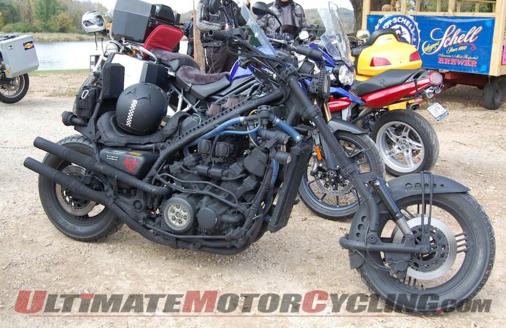 Well, thanks! I originally made a frame for the headlights out of steel bars but I had so many Harley riders ask me about the bike I eventually decided that I needed at least one Harley part - so I made a new frame using an old Harley primary chain (it's only two links wide so it's from a panhead, I think). It was supposed to be kind of a joke, but the joke was on me since I discovered that very few Harley owners even knew that they had a primary chain! When I pointed to the chain and told them that I had used one Harley part, most would say "You used a Harley timing chain?" I was forced to point out that Harley engines use long pushrods to operate the valves, not timing chains! Geesh! I originally figured that the lights surrounded by the chain would be my "high beams" and a pair of smaller lights mounted a bit lower would be my "low beams". The high beams had fairly high wattage bulbs and could light up the road like aircraft landing lights. That is pretty useful around here where deer by the road at night are a serious concern. However, a cop pulled me over and gave me a ticket for "not having my headlights on" even though the two lower lights were burning brightly. I pointed to them and was told that they were "running lights", not headlights. What can you say? I just shut-up and put lower wattage bulbs in the upper headlights and aimed them at bit more to the right so that I wouldn't blind oncoming cars. I guess I deviated a bit too far from "typical" and had to be brought back into line! zag