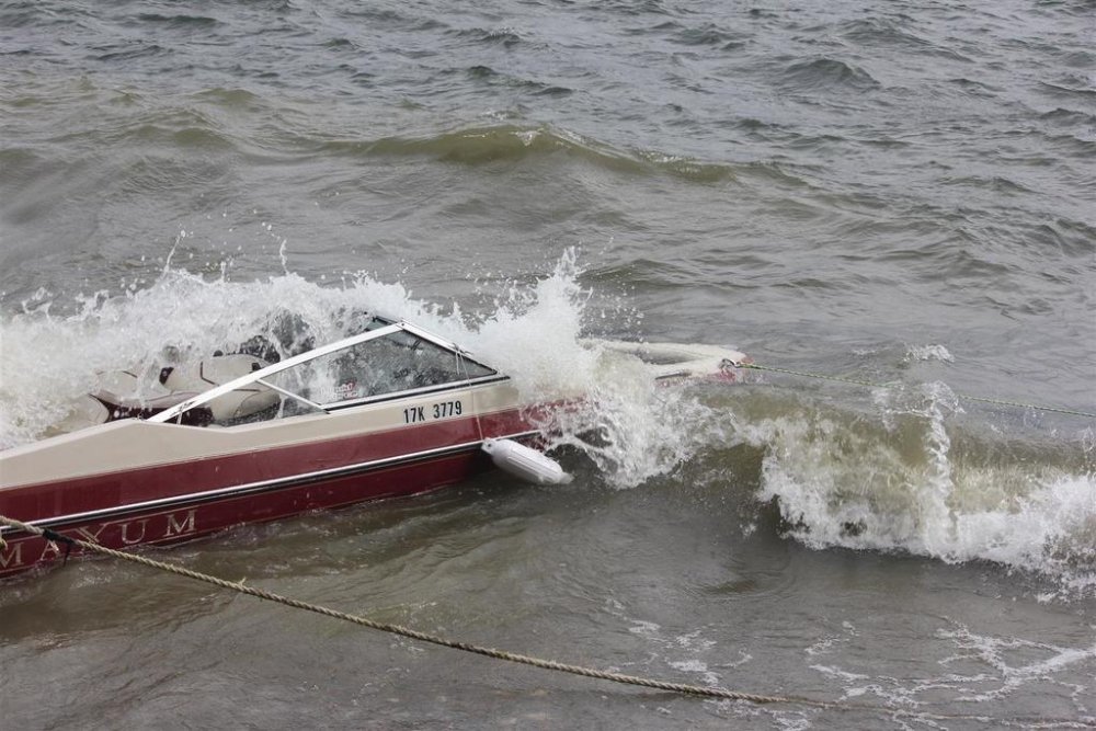 ya, and a deep-V hull would have been much better. We didn't get swamped while out on the lake ... we were trying to get to a dock but I got a bit past it and couldn't turn around due to the waves so all we could do was beach the boat. That's when it got filled with water. Bottom of the hull got chewed up a bit on the rocks to the tune of $1200. Everything else was salvageable ... .just needed cleaning and put back together. We used the boat half a dozen times after that in the same year. Then we moved to where we are now and sold it in the spring of 2015.
