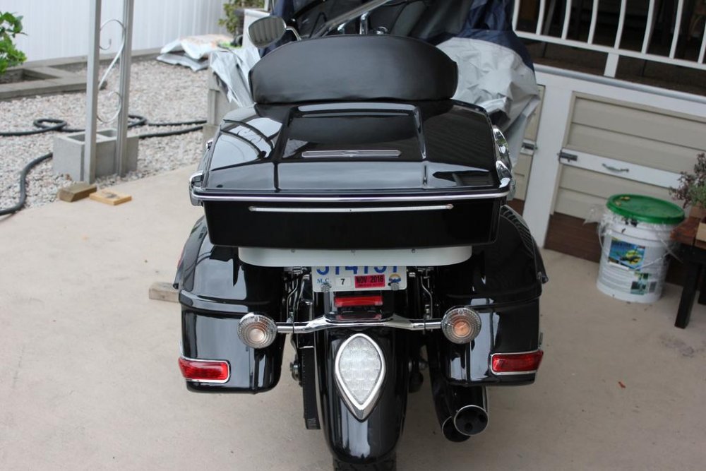... adding farkle to my Roadie Hard bags, trunk, crash bar, driving lamps, Wolo dual tone trumpet air horns, LED Daymaker headlight, LED brake/turn light strip on rear of trunk ... uhhhhhh I think there's more but I can't remember what... LOL