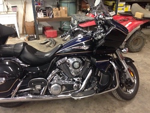 I know I don't post here often as I haven't had a Royal Star for some time. However, I hang around and keep my membership as this has been the best motorcycle forum I have joined by far. Those who know me know that I had a tendency to trade and sell bikes (understatement) - so who knows what I am riding from week to week! Two years ago I sold my Tour Deluxe for a 2010 Kawasaki Voyager - didn't keep long - didn't like the engine heat. Took a 99 Roadstar in on trade which began a two year love for the Roadstar line. I know I bought and sold over 10 Roadstars in those two years. In April I came across a 2011 Voyager for $8200 miles with less than 9,000 miles. Met the guy 1/2 way and road it home. He lived on gravel and when I got into it I have never seen a dirtier road bike. I had to pull the side panels off to clean the caked mud off the inside. I replaced the rear tire and I'm surprised the wheel wasn't way out of balance due to the mud caked on the inside of the hub. She cleaned up pretty good but my concern was how well it was cared for. The good news was the PO had purchased an extended warranty - giving me some peace. The 2011 still had the heat issue but I had planned to have the dealer install the KAM system now available and comes stock on 2012 and newer Voyagers. The hard bags on the 11 were cracked slightly so I was trying to get Kawasaki to replace my bags under warranty and when I was at the dealer the salesperson told me they just took a 2013 Voyager in on trade. So I looked it over and the salesperson said, "The guy who got this traded it on a new Voyager and I can make you a sweet deal." I thought, "Yeah, right!" For the fun of it I said shoot me a price - and he offered it to me for my bike and $2200. Since, I had planned to have the dealer install the KAM (air management system that takes care of the heat problem) on my 2011 at a cost of $600 to $700 anyway and the 2013's come with the KAM unit I figured we are at $1500 difference. Plus, the 2013 has ABS brakes and mine didn't. So, i traded up two years and got a bike that wasn't quite a beat up as mine, Picked up the bike yesterday and all that I didn't like about the 2010 and 11 is gone. Felt no heat from the engine and the ABS brakes are a big improvement. The 2013 seems more responsive as well. A few of you may be tempted to start taking odds at how long I hold on to this bike. I am making no promises!!