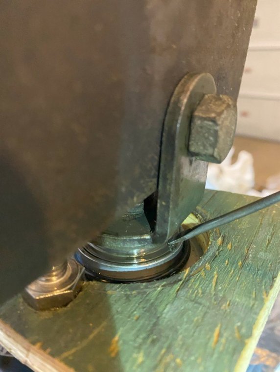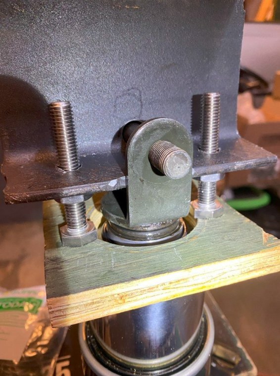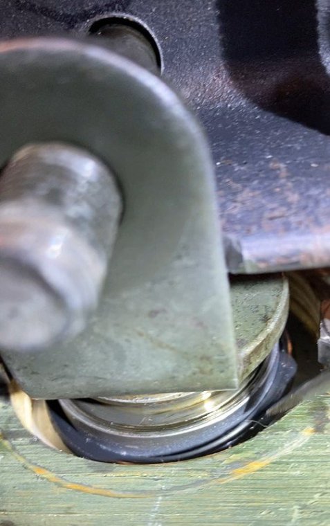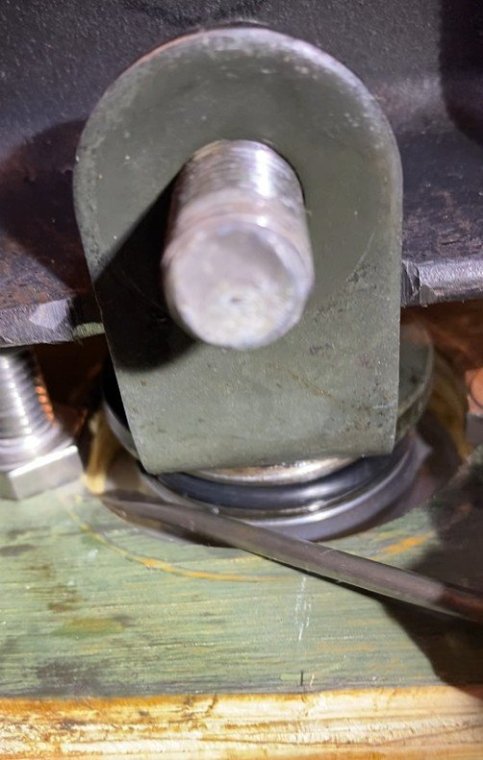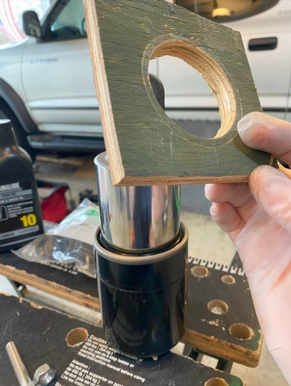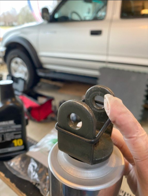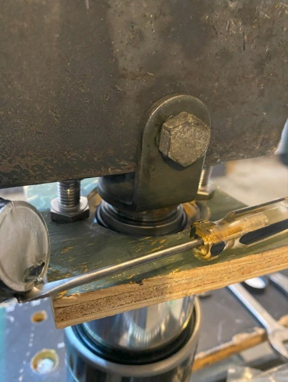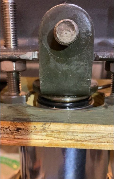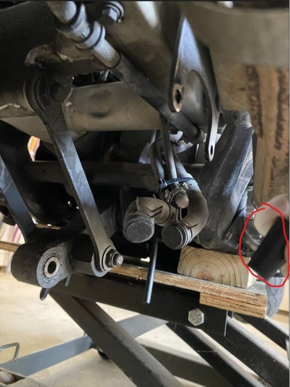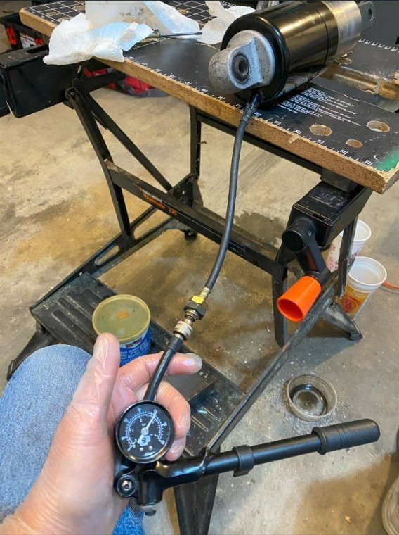 I bought my 2001 RSV with 71K Miles on it. And it had a pogo-stick rear shock. I thought I would share my adventure of renovating the rear shock on the forum. I don't see any way that this shock can be disassembled any more than what is required to replace the O ring, and Yamaha says the shock is not rebuildable. But here's the deal. There is an O ring seal on the shaft just above the bottom clevis pin shock mount that will wear out and the shock fluid will leak out. When enough fluid leaks out, your rear suspension acts like a pogo stick. Running max air pressure may help a bit, but to fix it, that O ring needs to be replaced, and shock fluid replenished, which will often restore the shock to like new performance. It fixed mine! Credit to long time member @dfitzbiz (Dave) for the detailed instructions on how to replace the O ring. I PM'd him and he quickly sent the instructions and a pic of the tool he created to accomplish the O ring replacement. I guess he has a reason for not posting those detailed instructions in an article on the forum, so I will follow his lead and not post his instructions here. I have searched and read the "RSV Repaired Rear Shock 2000 Mile Update" post from top to bottom and searched the forum site but I don't see the detailed instructions that Dave sent to me posted anywhere on this site. So I am posting pics of my shock renovation journey, along with descriptions and comments. I gotta say, after putting in the new O ring and replenishing the shock fluid, the rear shock feels like new. Dave fashioned his shock expansion tool from what looks like 1" square bar stock. I did not have ready access to this material, so I ended up using what I had on hand to build a variation of Dave's tool. As you look thru the pictures, check for descriptions and comments below the pics. Here's the O ring spec you'll need. I ordered a pack of like 50 from WalMart for about $10. Amazon, eBay etc. should have it - search for: Buna N size 218 O ring Shock Before Removal Harbor Freight Mini Moving Dolly Under Rear Wheel Harbor Freight Mini Moving Dolly Mini Dolly under rear wheel allows bike to be moved on the rolling jack after shock is removed. Removing the air filler hose from the bike. Removing the air filler. Removing the air filler. Removing the air filler. AIS is in the way - gotta come outta there. AIS coming out. Ratchet in place on top shock bolt. I think it's a 17mm. Ratchet in place on top shock bolt. Top Bolt ready to pull out. Loosening the bottom bolt. Bottom bolt ready to come out. Lowering and removing the shock. Shock removed, AIS hoses plugged and capped. Used rubber plugs for the bigger hoses (see red circle). Poor dirty old shock. Nice purty cleaned up old shock. What's behind the curtain? Removing the boot. Removing the boot. Boot removed. Boot removed. Hang the shock upside down and remove the air valve to allow shock fluid to drain. Draining the shock fluid. Draining the shock fluid. After about a day, less than 50ml drained out from the shock. After two more days, still the same. I waited that long only because I couldn't get back to this project for a couple of days, and figured it would be good to make sure it all drained out. So that's why my shock was pogo-ing. 50ml is not enough to provide damping. Maxing your air pressure to 57psi might help a bit but won't totally stop the pogo-ing. Now, if your shock won't keep air, I believe that is a separate problem. My shock would hold air pressure even tho the O ring was leaky. So my guess is there's another chamber or rubber balloon that handles the air pressure. Well, in retrospect, the above can't be right. The air goes in the same hole that you pour the shock oil into so the damping mechanism and air chamber are connected. Comments and experienced observations are welcome here! Less than 50ml of old fluid came out of my shock. Dave recommends refilling a shock with 125ml. Fabricating the expansion tool. So this piece of steel channel stock was cut from a 6 foot length I found laying in the middle of a street about 15 - 20 years ago. You never know when you might need a chunk of channel stock, right? Shock bolt will go thru this hole. Pusher bolts will go thru the two smaller holes. Lube the new O ring. Carefully slip the new O ring over the clevis and down onto the collar at the base of the shock. Carefully slip the new O ring over the clevis and down onto the collar at the base of the shock. Carefully slip the new O ring over the clevis and down onto the collar at the base of the shock. I made this pressure plate from plywood. It's not really sturdy enough for doing multiple shocks, but it worked fine for this one shock. This spreads the pressure from the pusher bolts out so as not to deform/bend the bottom of the shock housing when the pusher bolts are tightened. Expansion tool mounted and ready to pull the shaft up to expose the old O ring. Expansion tool mounted and ready to pull the shaft up to expose the old O ring. Tightening the nuts on the pusher bolts. The nuts push the tool and shaft upwards while the bolts push down against the shock body. O ring starting to show in the gap as the shock is expanded. O ring starting to show in the gap as the shock is expanded. Slip a small screwdriver under the old O ring and pull it out from the groove. Snip the old O ring and pull it out of the shock. Old O ring is clipped and ready to be pulled out. Old O ring. Clean and lube the groove that the O ring fits into. Clean and lube the groove that the O ring fits into. Use a small screwdriver to carefully coax the new O ring up off the collar and into the groove. Use a small screwdriver to carefully coax the new O ring up off the collar and into the groove. Use a small screwdriver to carefully coax the new O ring up off the collar and into the groove. New O ring in place. Clean it up as good as you can. New O ring is in place. Make sure it's still adequately lubed. Slowly back down the nuts on the pusher bolts to all