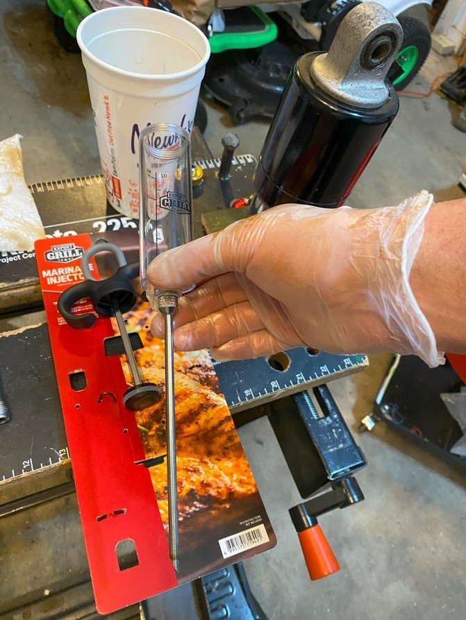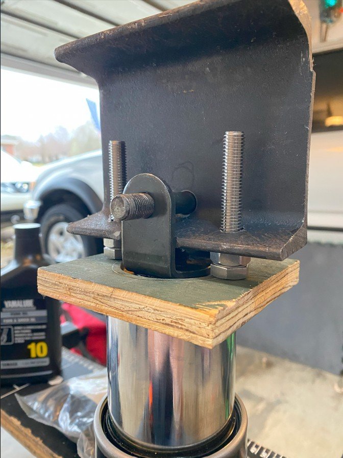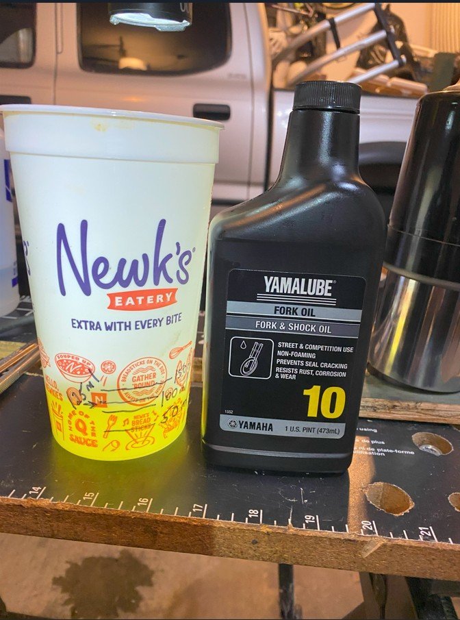 I bought my 2001 RSV with 71K Miles on it. And it had a pogo-stick rear shock. I thought I would share my adventure of renovating the rear shock on the forum. I don't see any way that this shock can be disassembled any more than what is required to replace the O ring, and Yamaha says the shock is not rebuildable. But here's the deal. There is an O ring seal on the shaft just above the bottom clevis pin shock mount that will wear out and the shock fluid will leak out. When enough fluid leaks out, your rear suspension acts like a pogo stick. Running max air pressure may help a bit, but to fix it, that O ring needs to be replaced, and shock fluid replenished, which will often restore the shock to like new performance. It fixed mine! Credit to long time member @dfitzbiz (Dave) for the detailed instructions on how to replace the O ring. I PM'd him and he quickly sent the instructions and a pic of the tool he created to accomplish the O ring replacement. I guess he has a reason for not posting those detailed instructions in an article on the forum, so I will follow his lead and not post his instructions here. I have searched and read the "RSV Repaired Rear Shock 2000 Mile Update" post from top to bottom and searched the forum site but I don't see the detailed instructions that Dave sent to me posted anywhere on this site. So I am posting pics of my shock renovation journey, along with descriptions and comments. I gotta say, after putting in the new O ring and replenishing the shock fluid, the rear shock feels like new. Dave fashioned his shock expansion tool from what looks like 1" square bar stock. I did not have ready access to this material, so I ended up using what I had on hand to build a variation of Dave's tool. As you look thru the pictures, check for descriptions and comments below the pics. Here's the O ring spec you'll need. I ordered a pack of like 50 from WalMart for about $10. Amazon, eBay etc. should have it - search for: Buna N size 218 O ring Shock Before Removal Harbor Freight Mini Moving Dolly Under Rear Wheel Harbor Freight Mini Moving Dolly Mini Dolly under rear wheel allows bike to be moved on the rolling jack after shock is removed. Removing the air filler hose from the bike. Removing the air filler. Removing the air filler. Removing the air filler. AIS is in the way - gotta come outta there. AIS coming out. Ratchet in place on top shock bolt. I think it's a 17mm. Ratchet in place on top shock bolt. Top Bolt ready to pull out. Loosening the bottom bolt. Bottom bolt ready to come out. Lowering and removing the shock. Shock removed, AIS hoses plugged and capped. Used rubber plugs for the bigger hoses (see red circle). Poor dirty old shock. Nice purty cleaned up old shock. What's behind the curtain? Removing the boot. Removing the boot. Boot removed. Boot removed. Hang the shock upside down and remove the air valve to allow shock fluid to drain. Draining the shock fluid. Draining the shock fluid. After about a day, less than 50ml drained out from the shock. After two more days, still the same. I waited that long only because I couldn't get back to this project for a couple of days, and figured it would be good to make sure it all drained out. So that's why my shock was pogo-ing. 50ml is not enough to provide damping. Maxing your air pressure to 57psi might help a bit but won't totally stop the pogo-ing. Now, if your shock won't keep air, I believe that is a separate problem. My shock would hold air pressure even tho the O ring was leaky. So my guess is there's another chamber or rubber balloon that handles the air pressure. Well, in retrospect, the above can't be right. The air goes in the same hole that you pour the shock oil into so the damping mechanism and air chamber are connected. Comments and experienced observations are welcome here! Less than 50ml of old fluid came out of my shock. Dave recommends refilling a shock with 125ml. Fabricating the expansion tool. So this piece of steel channel stock was cut from a 6 foot length I found laying in the middle of a street about 15 - 20 years ago. You never know when you might need a chunk of channel stock, right? Shock bolt will go thru this hole. Pusher bolts will go thru the two smaller holes. Lube the new O ring. Carefully slip the new O ring over the clevis and down onto the collar at the base of the shock. Carefully slip the new O ring over the clevis and down onto the collar at the base of the shock. Carefully slip the new O ring over the clevis and down onto the collar at the base of the shock. I made this pressure plate from plywood. It's not really sturdy enough for doing multiple shocks, but it worked fine for this one shock. This spreads the pressure from the pusher bolts out so as not to deform/bend the bottom of the shock housing when the pusher bolts are tightened. Expansion tool mounted and ready to pull the shaft up to expose the old O ring. Expansion tool mounted and ready to pull the shaft up to expose the old O ring. Tightening the nuts on the pusher bolts. The nuts push the tool and shaft upwards while the bolts push down against the shock body. O ring starting to show in the gap as the shock is expanded. O ring starting to show in the gap as the shock is expanded. Slip a small screwdriver under the old O ring and pull it out from the groove. Snip the old O ring and pull it out of the shock. Old O ring is clipped and ready to be pulled out. Old O ring. Clean and lube the groove that the O ring fits into. Clean and lube the groove that the O ring fits into. Use a small screwdriver to carefully coax the new O ring up off the collar and into the groove. Use a small screwdriver to carefully coax the new O ring up off the collar and into the groove. Use a small screwdriver to carefully coax the new O ring up off the collar and into the groove. New O ring in place. Clean it up as good as you can. New O ring is in place. Make sure it's still adequately lubed. Slowly back down the nuts on the pusher bolts to all
