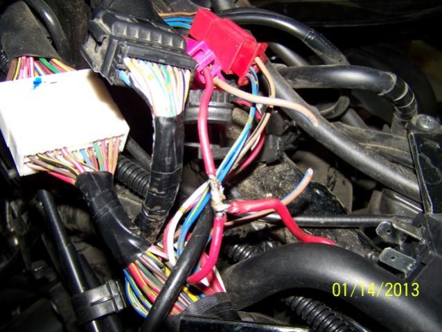 There's been several times members here have by passed their ignition switch due to either switch failures or as a preventive to ward off failures. Today I decided to also do that to my bike and at the same time do a write up on it per a recent posting on this topic. For those who wonder why this is needed or desired the ignition switch has the majority of the power going thru one wire to feed lights and ignition requirements. Needless to say the switches contacts take a beating over time caused by overheating & normal wear & tear. The accessory part of the switch seems to never have this type of failure so this does lend credence to overloading on the one line being feed. By adding in a common 30 amp auto relay to that part of the circuit we can take the majority of the power off the switch before it gets there and route it directly to the line the switch powers, thus saving the switch. You'll need a couple of short 14 gauge wires, push on terminals, shrink wrap, and a 30 amp auto relay to do the job plus a soldering gun and wire stripper. To start you need to remove the drivers seat and gas tank. The gas tank is held on with a single bolt on the end by the seat plus two allen head bolts on the sides up front. Remove the cover by the ignition/gas cap. Disconnect the overflow vent hose and the fuel sender wires. The tank can be lifted off and set down out of the way now. Disconnect the (-) negative cable from the battery as you'll have one wire live otherwise. On top of the engine locate the wire harness coming from the ignition switch. There will be two red plug connectors going through a holder. Pull those out. The one you'll be working on will be the 2 wire one with a pink plug on one end disconnect that plug. Picture 1 shows it well. The next step is to splice a wire to the red wire with 14 gauge leaving it long enough to work with. Refer to picture 2 Cut the brown /blue wire leaving enough at the plug side to work with. Add a short length to both ends of the cut wire. Using a butt connector, soldered, and covered with shrink tubing will give a solid connection as well as protection . Add a female spade terminal to both of those ends. Do the same for the red wire spliced earlier too. Cover with shrink tubing after soldering them. Make a ground wire with a eyelet end on one end and a female terminal on the other. See picture 3. I used the closest bolt holding the radiator fill cap in place to ground the eyelet. The opposite end will attach to the relay. Connect the wires to the relay follows: spliced Red wire fastens to #30 terminal of the relay the brown /blue wire from the switch attaches to #86 terminal on the relay the brown /blue wire going to the harness connects to#87 terminal on the relay the gounding wire attaches to the #85 terminal on the relay. Wrap the wires up with tape and tuck them back into the harness holder. Pics 4 & 5 show the completed job with the relay as tucked in on top of the engine. Note: While this mod will prolong the life of the switch a long time there's always the posibilty that the switch can still fail through normal wear. If it does you can simply connect together the red wire and the brown/blue wire on the harness side to get you home. Some folks take this a step further and add a toggle switch between the two wires. I don't think it's neccassary on newer bikes but if you're experincing any ignition troubles now then I would certainly see the advatage of adding a toggle switch where you can get to it without having to remove the tank.